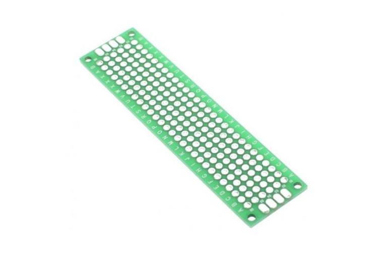 Basetta per Prototipazione Doppia Faccia 2X8cm con fori a passo 2,54mm e diametro di 1mm.