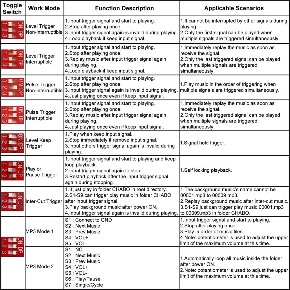 - L'interruttore DIP imposta 8 modalità di funzionamento del trigger