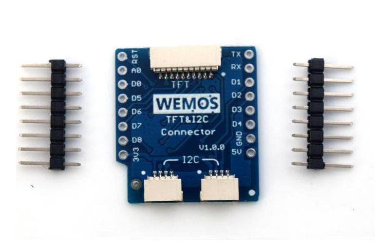 Il Modulo I2C Connector Shield for WEMOS D1 aggiunge due connettori per I2C per la connessione ad altri moduli della serie Wemos ed un connettore per il collegamento dei display LCD da 1.44 Pollici e da 2,4 pollici.